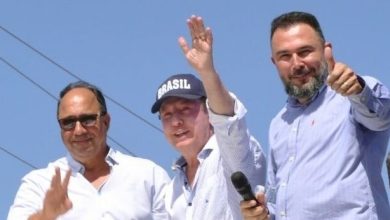 Candidatos a deputado estadual e federal, em 'dobradinha' pelo Podemos, também pediram votos para Caiado na visita ao comércio de Campinorte na terça/25: Machadinho busca eleger-se deputado estadual para representar o Norte e poderá ocupar vaga de Nelto, que disputa cadeira na Câmara Federal