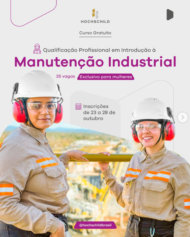 Estão abertas as inscrições para o Curso de Formação de Mão de Obra Feminina em Manutenção Industrial na Mineração, promovido pela Hochschild Mining Brasil, em parceria com o SENAI (Serviço Nacional de Aprendizagem Industrial).