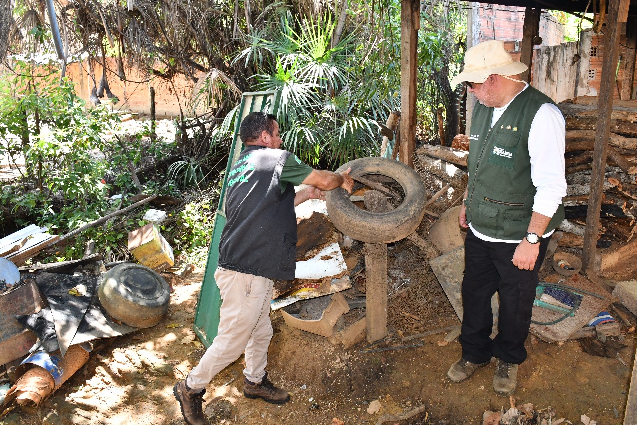 Por outro lado, Hélio e Rogério Pacheco observaram que o quintal de uma residência continha muitos entulhos com água parada, como pneus velhos, garrafas de vidro e baldes cheios de água, resultando em focos do mosquito da dengue.