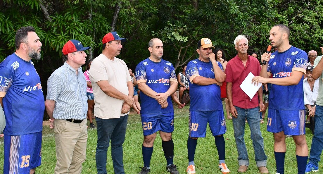 PEDIU ASFALTO – Evertin do Muquém é prestigiado por Eduardo Moreira, José Nelto e Lineu Olímpio durante jogo amistoso de futebol no povoado, em Niquelândia