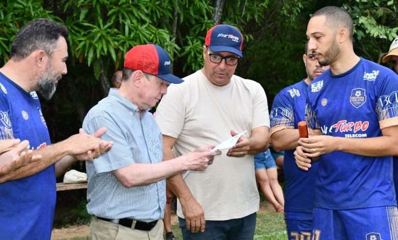 PEDIU ASFALTO – Evertin do Muquém é prestigiado por Eduardo Moreira, José Nelto e Lineu Olímpio durante jogo amistoso de futebol no povoado, em Niquelândia