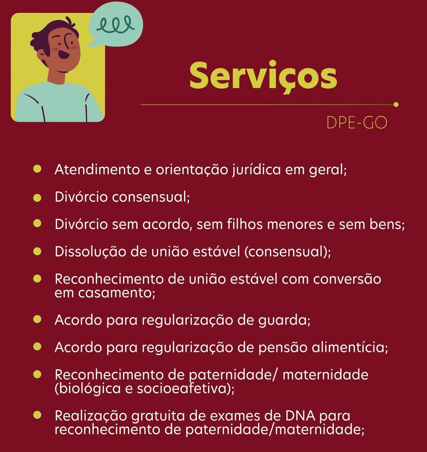 Entre os serviços que serão oferecidos estão atendimento e orientação jurídica em geral, divórcio consensual, divórcio sem acordo (quando não há filhos menores ou bens a partilhar), dissolução consensual de união estável e reconhecimento de união estável com conversão em casamento.