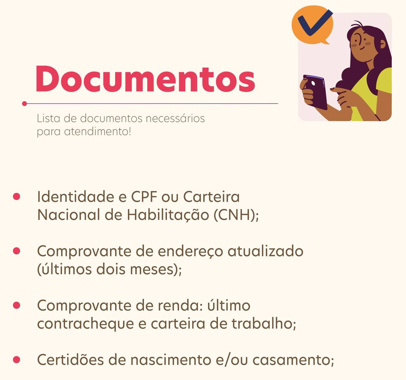 Para ser atendido, é necessário que a pessoa interessada apresente documentos como identidade e CPF ou Carteira Nacional de Habilitação (CNH), comprovante de endereço atualizado dos últimos dois meses, certidões de nascimento e/ou casamento e comprovante de renda, que pode ser o último contracheque ou carteira de trabalho.