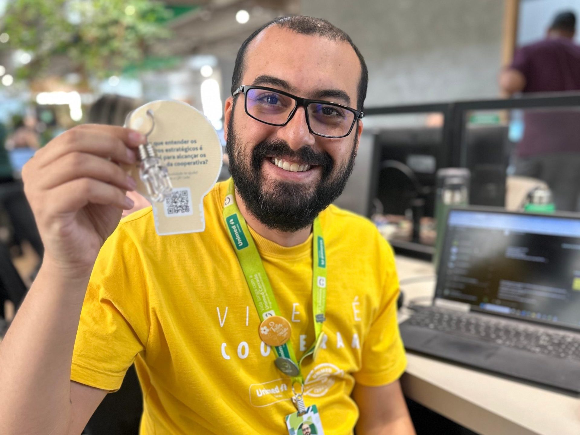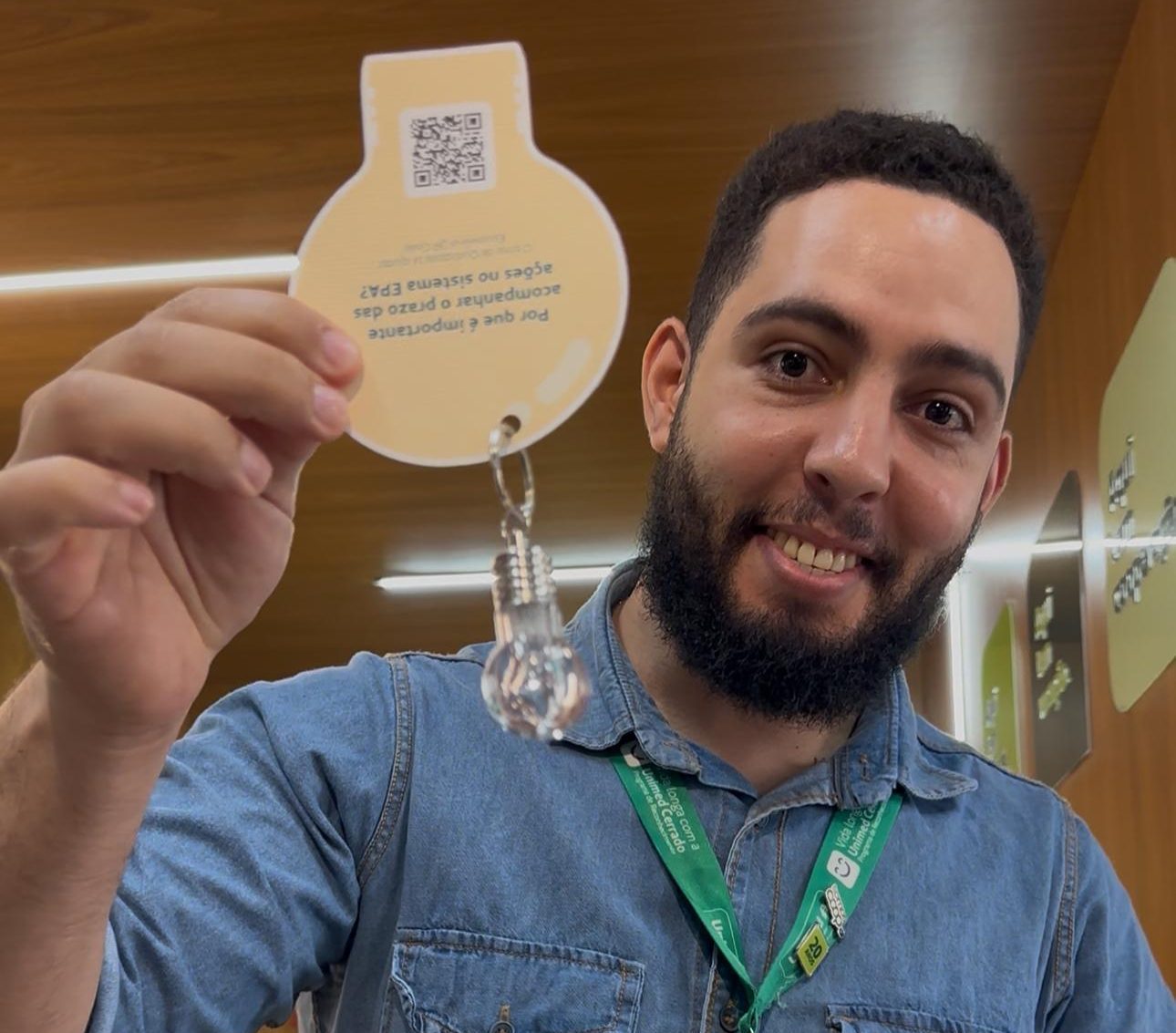 QUALIDADE QUE ILUMINA RESULTADOS – Em celebração ao Dia Mundial da Qualidade, a Unimed Cerrado entregou este brinde temático aos colaboradores, destacando a importância do trabalho integrado entre as áreas da cooperativa [Foto: Divulgação]