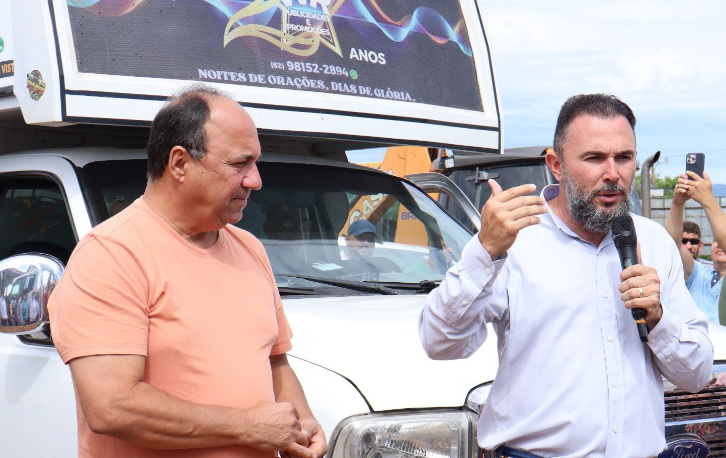 Eduardo Moreira, prefeito de Niquelândia, em seu breve pronunciamento na abertura da operação de limpeza, na presença do deputado estadual Lineu Olímpio [Foto: Supercom Niquelândia]